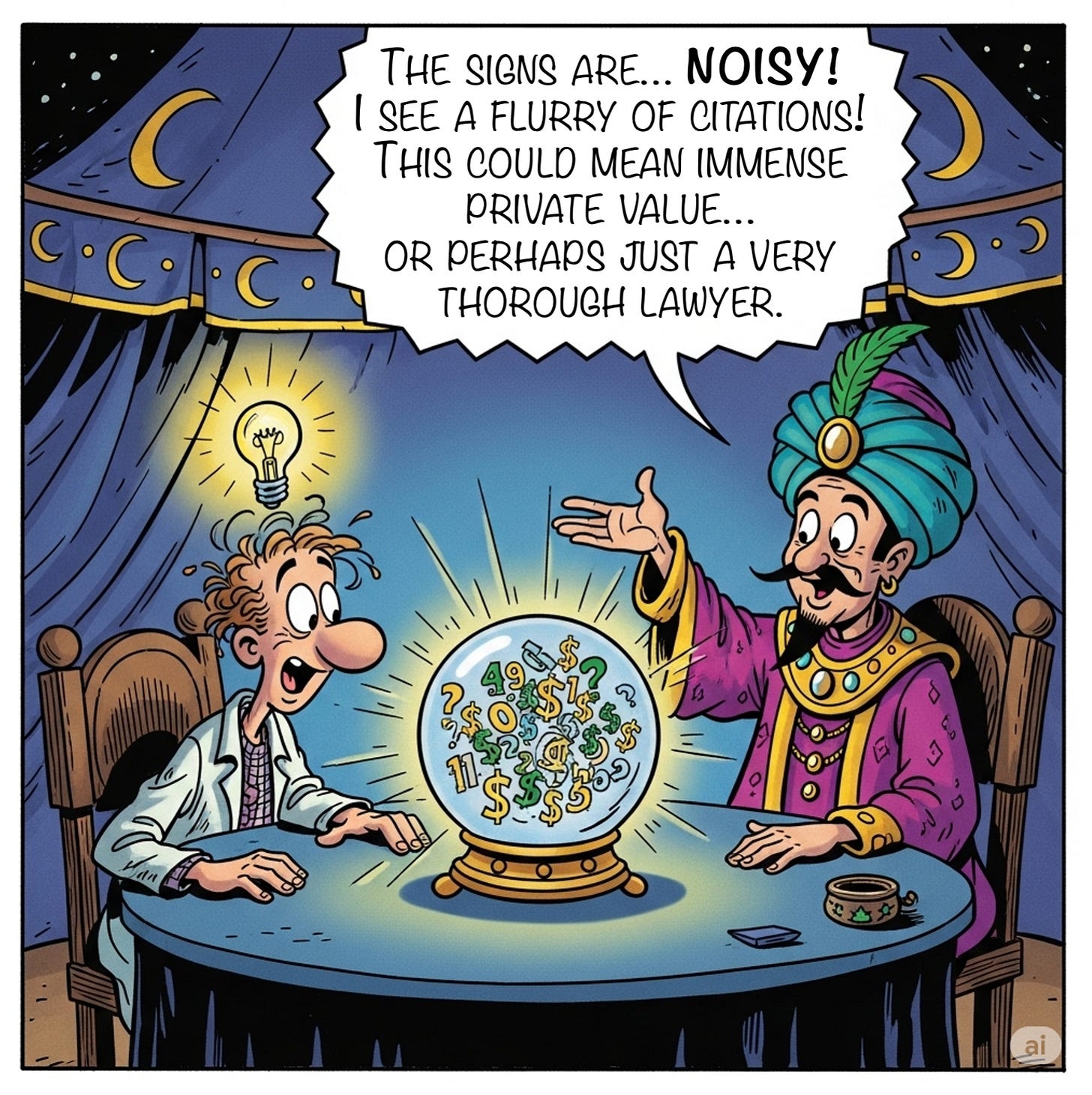 However, while scientific citations are widely understood as a way to give credit—recognizing a researcher’s contribution to the advancement of knowledge—patent citations serve an entirely different purpose, rooted in legal procedure rather than scholarly acknowledgment. Citations in patents are part of the legal assessment of patentability, disclosing prior art that helps examiners determine whether an invention is novel and non-obvious. This legal function blurs the use of patent citations as signals of value—at least in the way we interpret citations in science.